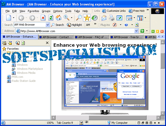 At SoftSpecialist you can see the GUI to know how the program AM Browser will look like on the screen after you install it on your computer.
