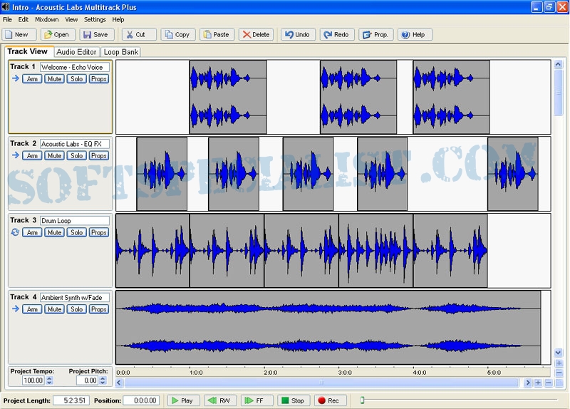 At SoftSpecialist you can see the GUI to know how the program Acoustic Labs Multitrack Plus will look like on the screen after you install it on your computer.