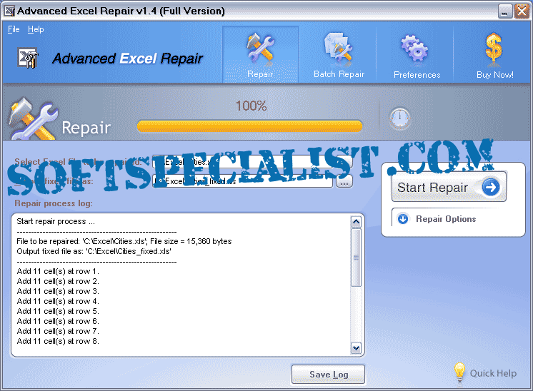 At SoftSpecialist you can see the GUI to know how the program Advanced Excel Repair will look like on the screen after you install it on your computer.