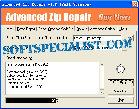 At SoftSpecialist you can see the GUI to know how the program Advanced Zip Repair will look like on the screen after you install it on your computer.