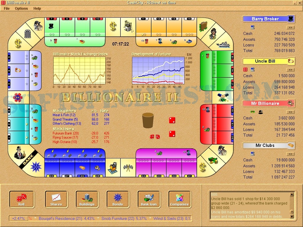 At SoftSpecialist you can see the GUI to know how the program Billionaire II will look like on the screen after you install it on your computer.