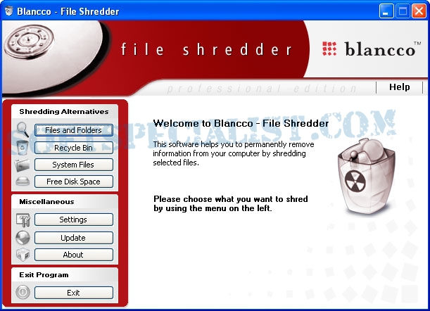 At SoftSpecialist you can see the GUI to know how the program Blancco - File Shredder will look like on the screen after you install it on your computer.