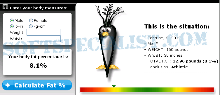 Calculate body fat percentage with this online calculator freeware and know if you are in the healthy range ... |