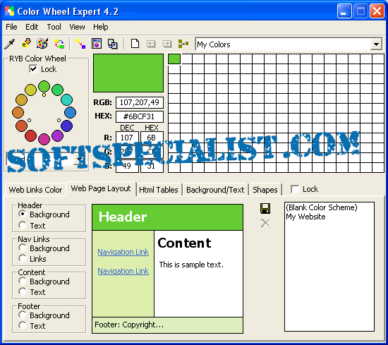 At SoftSpecialist you can see the GUI to know how the program Color Wheel Expert will look like on the screen after you install it on your computer.
