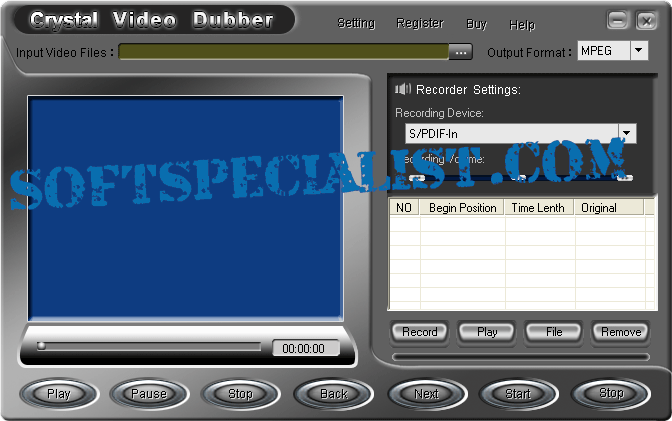 At SoftSpecialist you can see the GUI to know how the program Crystal Video Dubber will look like on the screen after you install it on your computer.