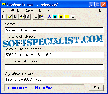At SoftSpecialist you can see the GUI to know how the program Envelope Printer will look like on the screen after you install it on your computer.