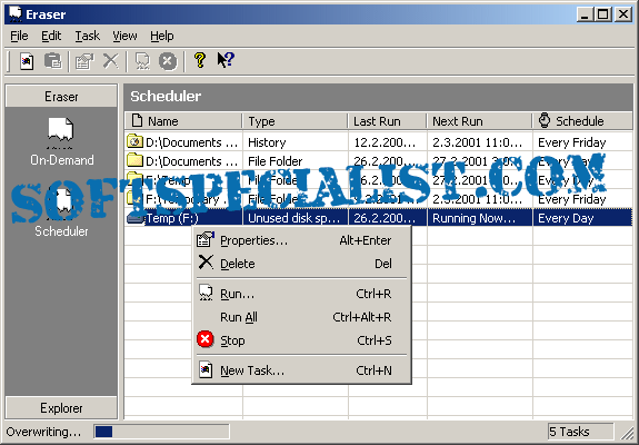 At SoftSpecialist you can see the GUI to know how the program Eraser will look like on the screen after you install it on your computer.
