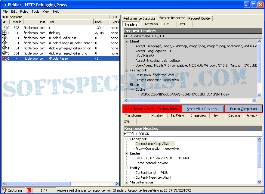 At SoftSpecialist you can see the GUI to know how the program Fiddler will look like on the screen after you install it on your computer.