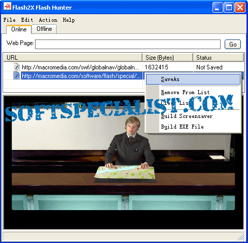 At SoftSpecialist you can see the GUI to know how the program Flash2X Flash Hunter will look like on the screen after you install it on your computer.