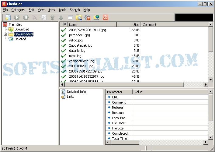 At SoftSpecialist you can see the GUI to know how the program FlashGet will look like on the screen after you install it on your computer.