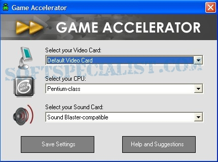 At SoftSpecialist you can see the GUI to know how the program Game Accelerator will look like on the screen after you install it on your computer.