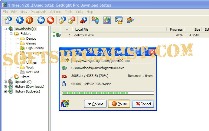 At SoftSpecialist you can see the GUI to know how the program GetRight will look like on the screen after you install it on your computer.
