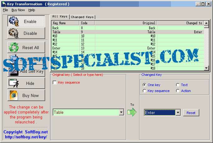 At SoftSpecialist you can see the GUI to know how the program Key Transformation will look like on the screen after you install it on your computer.