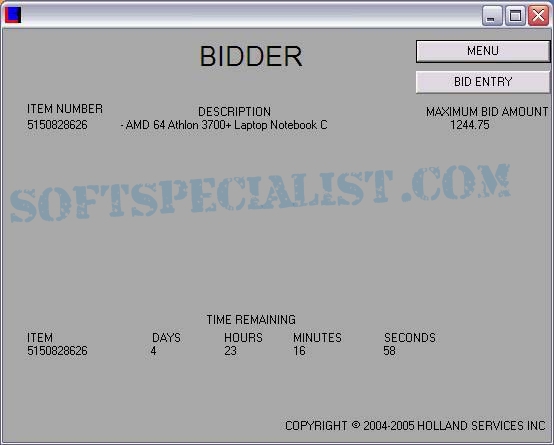 At SoftSpecialist you can see the GUI to know how the program LASTBID will look like on the screen after you install it on your computer.