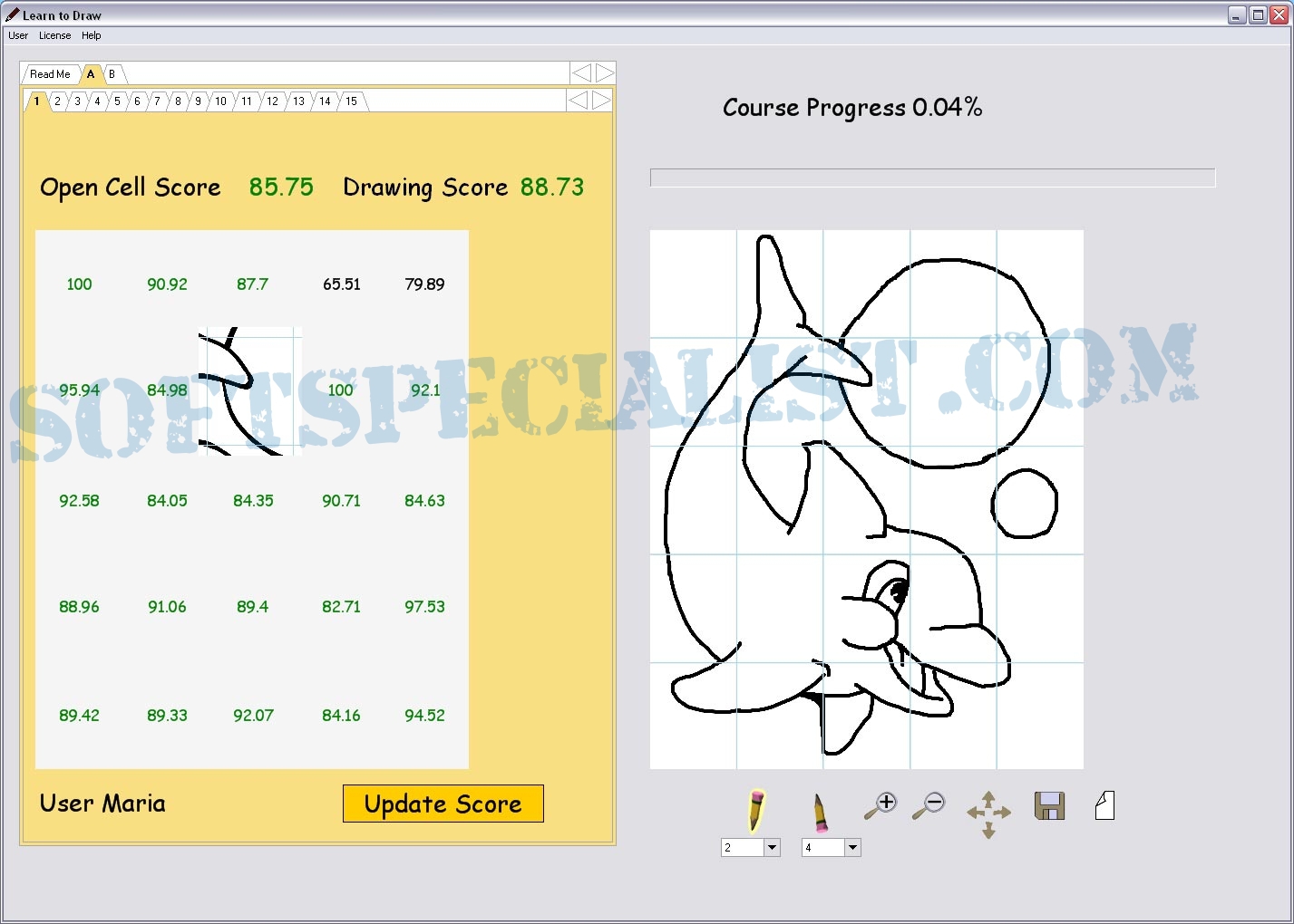 At SoftSpecialist you can see the GUI to know how the program Learn to Draw for Beginners will look like on the screen after you install it on your computer.