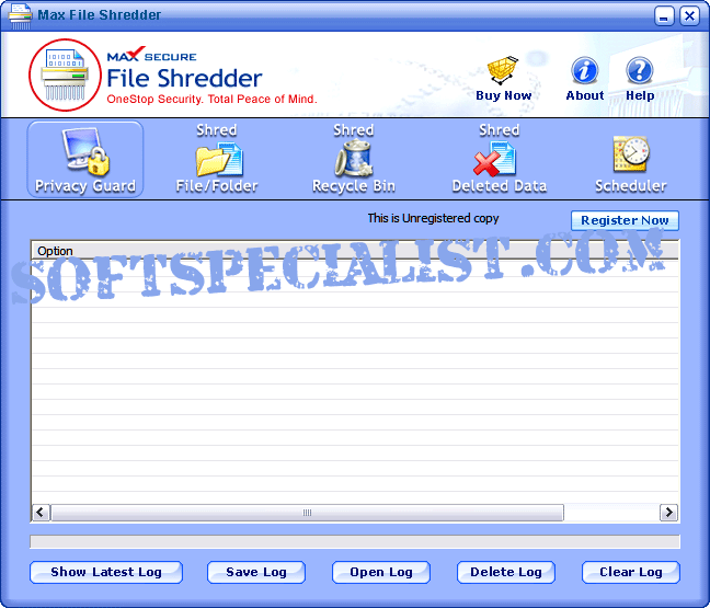 At SoftSpecialist you can see the GUI to know how the program Max File Shredder will look like on the screen after you install it on your computer.