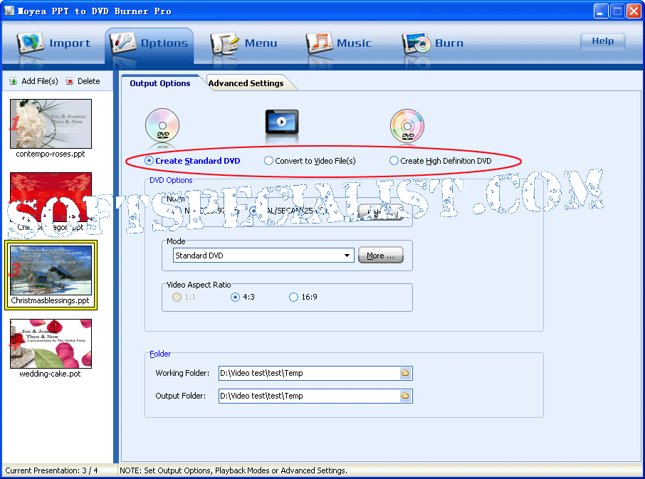 At SoftSpecialist you can see the GUI to know how the program Moyea PPT to DVD Burner will look like on the screen after you install it on your computer.