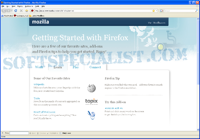 At SoftSpecialist you can see the GUI to know how the program Mozilla Firefox will look like on the screen after you install it on your computer.