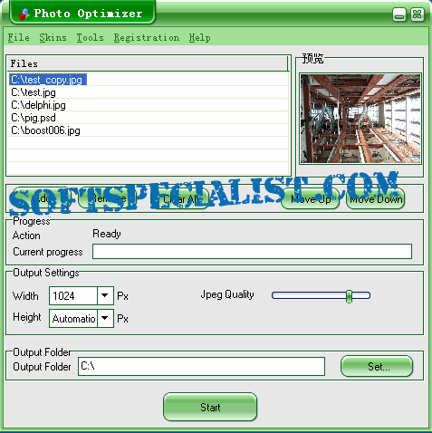 At SoftSpecialist you can see the GUI to know how the program Photo Optimizer will look like on the screen after you install it on your computer.