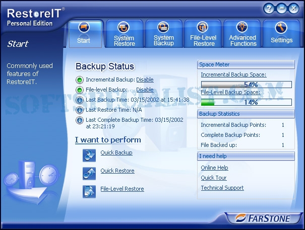 At SoftSpecialist you can see the GUI to know how the program RestoreIT will look like on the screen after you install it on your computer.