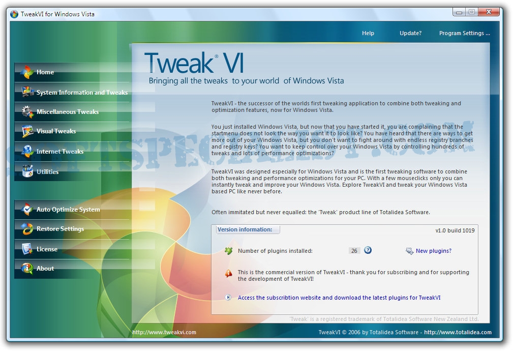 At SoftSpecialist you can see the GUI to know how the program TweakVI Basic will look like on the screen after you install it on your computer.