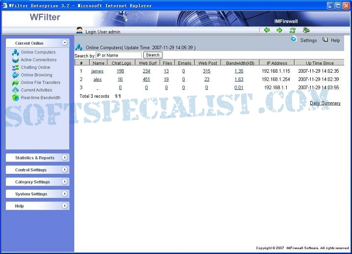 At SoftSpecialist you can see the GUI to know how the program WFilter Enterprise will look like on the screen after you install it on your computer.