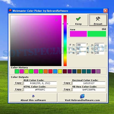 At SoftSpecialist you can see the GUI to know how the program Webmaster Color Picker will look like on the screen after you install it on your computer.