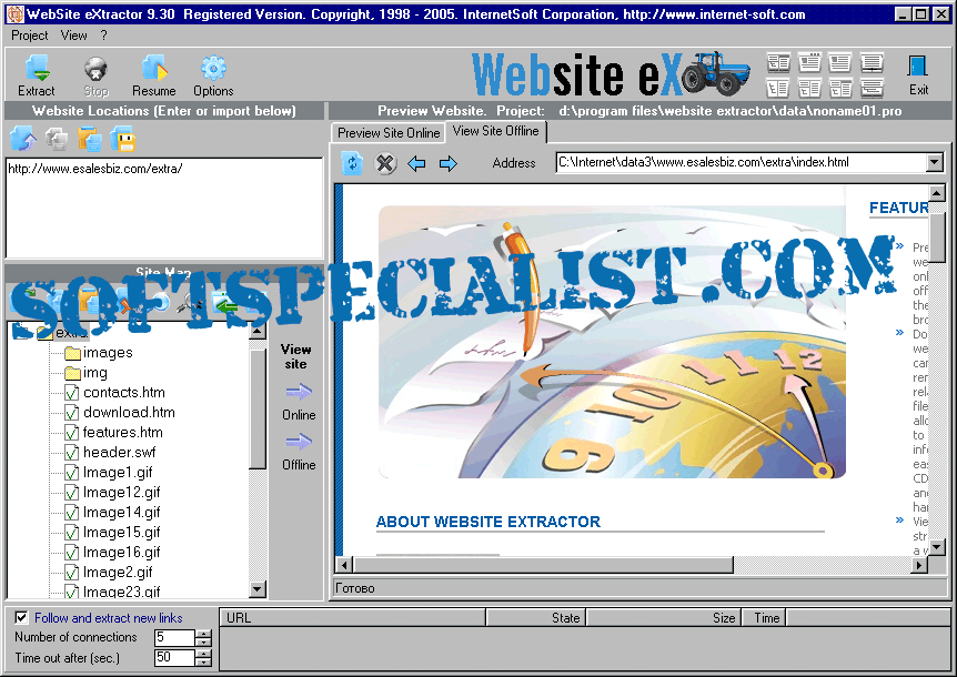 At SoftSpecialist you can see the GUI to know how the program Website Extractor will look like on the screen after you install it on your computer.