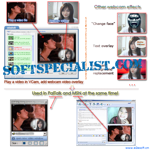 At SoftSpecialist you can see the GUI to know how the program e2eSoft VCam will look like on the screen after you install it on your computer.